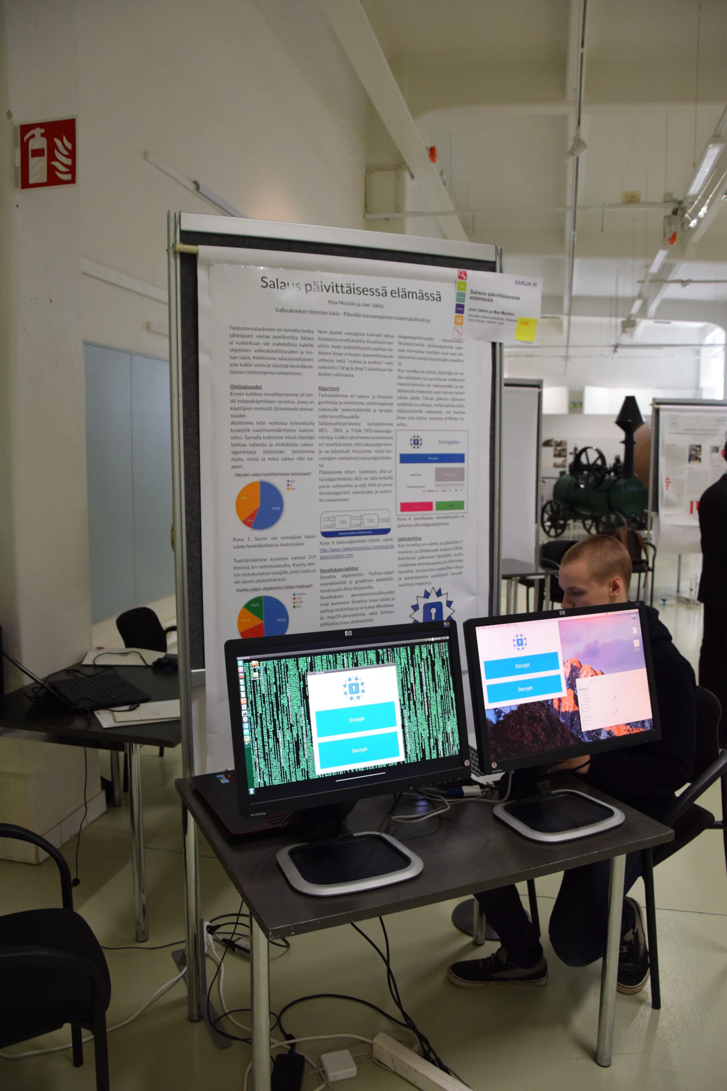 Salaus päivittäisessä elämässä -työ menestyi finaalissa ja voitti paikan ISEF:iin, International Science and Engineering Fair:iin. ISEF paikan ja tunnustuspalkinnon saaneet pääsevät toukokuussa lentämään Yhdysvaltoihin, Los Angelesiin. ISEF:iin lähtijät Max Mecklin ja Joel Jäkkö sanovat, että ennen toukokuun puoliväliä riittää tekemistä: Poikien pitää valmistella ja kääntää työn materiaali englanniksi ja sen lisäksi he aikovat jatkokehittää tekemäänsä ohjelmaa.
