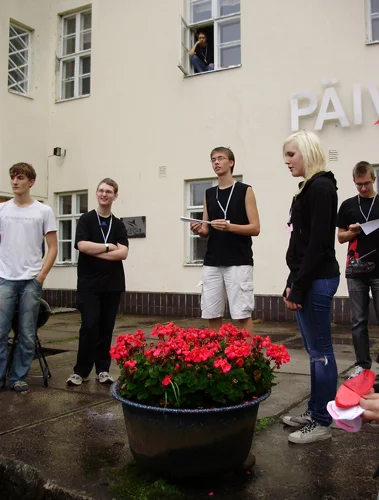 Matematiikkalinjalaisia matematiikkalinjan rakennuksen, Kivitalon edessä.